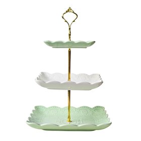 3-TIER GREEN WHITE EMBOSSED CAKE STAND - LARGE