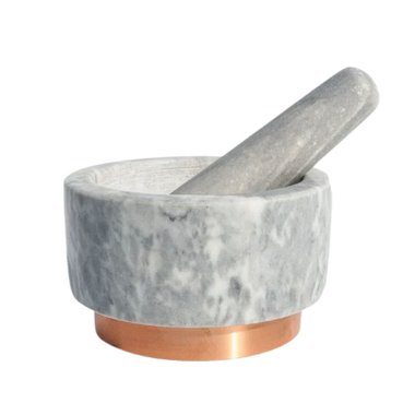 NORDIC WHITE MARBLE MORTAR AND PESTLE (ROSE GOLD BASE)