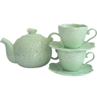 PASTEL MINT BUTTERFLY CERAMIC TEAPOT SET