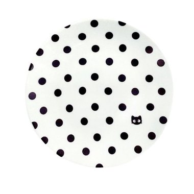 BLACK POLKA DOT CAT CERAMIC PLATE