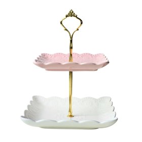 2-TIER WHITE PINK EMBOSSED CAKE STAND - MEDIUM
