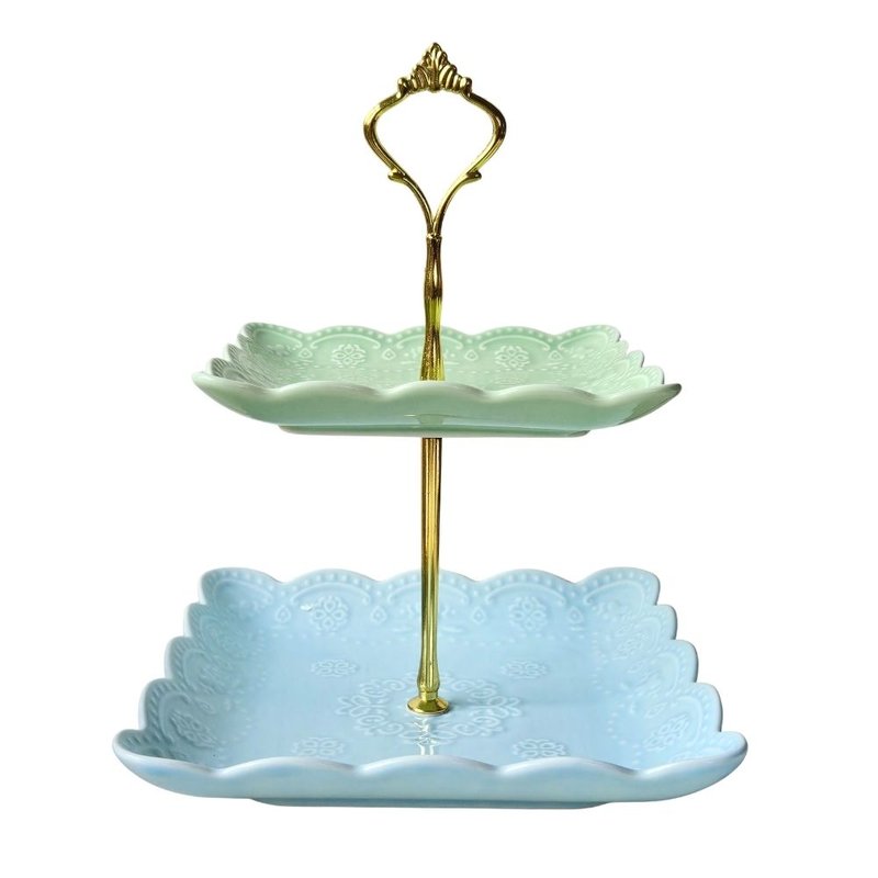 / 2-TIER GREEN BLUE EMBOSSED CAKE STAND - MEDIUM