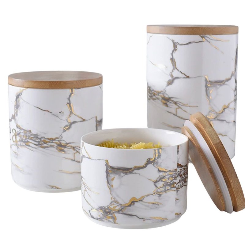 GOLD VEIN NORDIC CERAMIC CANISTERS WITH LIDS