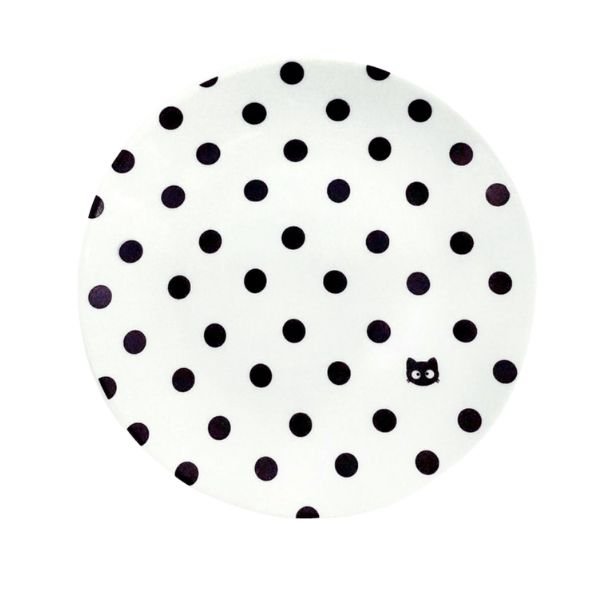 BLACK POLKA DOT CAT CERAMIC PLATE