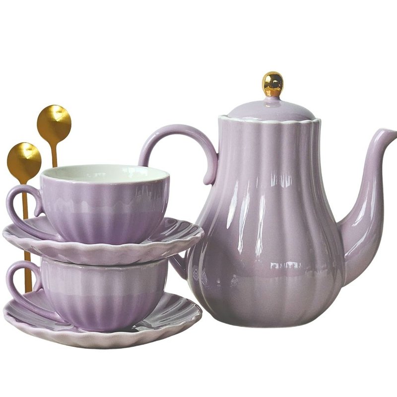 A Set will consist of 1 Teapot + 2 Saucers + 2 Cups + 2 Stainless Steel Teaspoons
