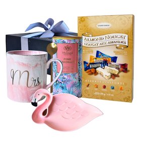The Gift Hamper is professionally wrapped in clear shrink wrap & decorated in ribbons. It is then hand delivered to the recipient.