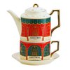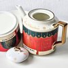 - 1 x Ceramic Christmas Holiday Teapot with Teacup and Saucer with Gold Accents