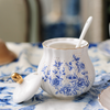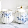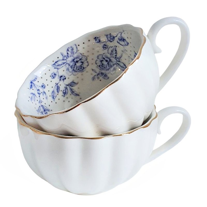 - 2 x White Blue English Rose Porcelain Teacups with Gold Handle