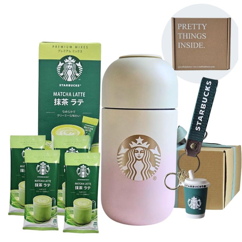Delight in cozy matcha moments with this charming gift set, including a Starbucks tumbler, matcha latte sachets, and a mini Starbucks Cup keychain — perfect for friends or self-indulgence.