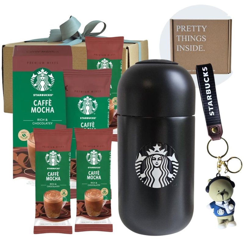 Delight in cozy matcha moments with this charming gift set, including a Starbucks tumbler, Mocha latte sachets, and a mini Starbucks Cup keychain — perfect for friends or self-indulgence.