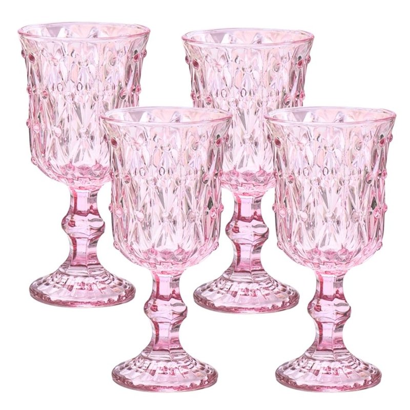 VINTAGE INSPIRED CRYSTAL GLASS TALL GOBLETS - PINK