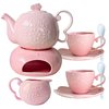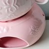 PINK CERAMIC EMBOSS BUTTERFLY TEAPOT SET WITH WARMER