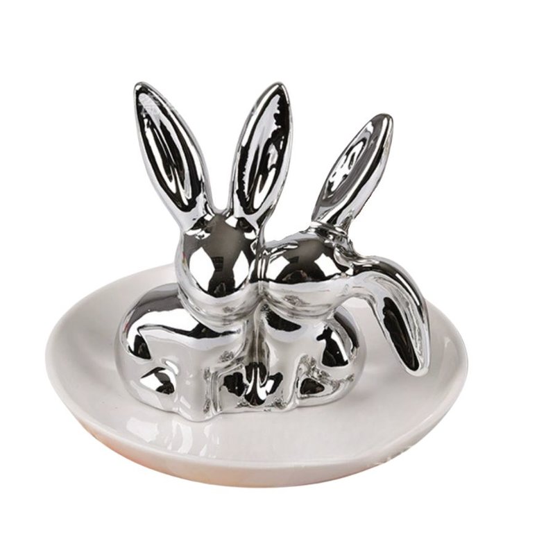 CERAMIC SILVER RABBIT RING HOLDER WITH BASE