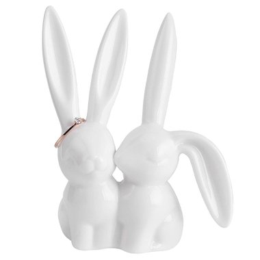 CERAMIC SILVER RABBIT RING HOLDER WITH BASE