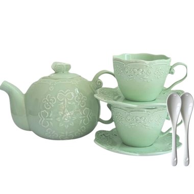 PASTEL MINT EMBOSS BUTTERFLY CERAMIC TEAPOT SET